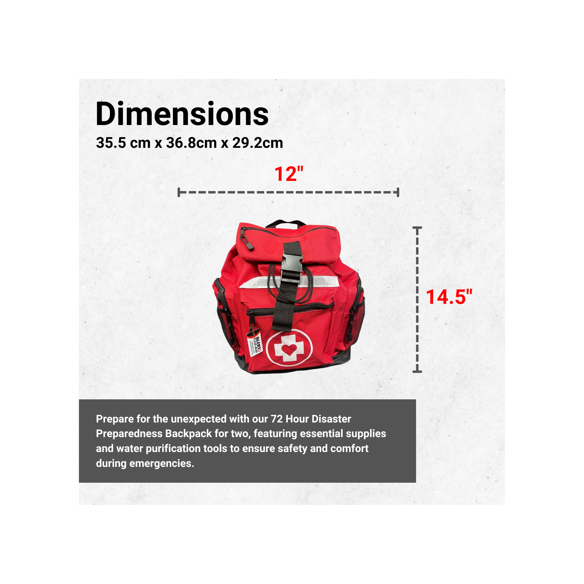 Be prepared for the unexpected with this reliable, all-in-one disaster kit designed specifically for two people.